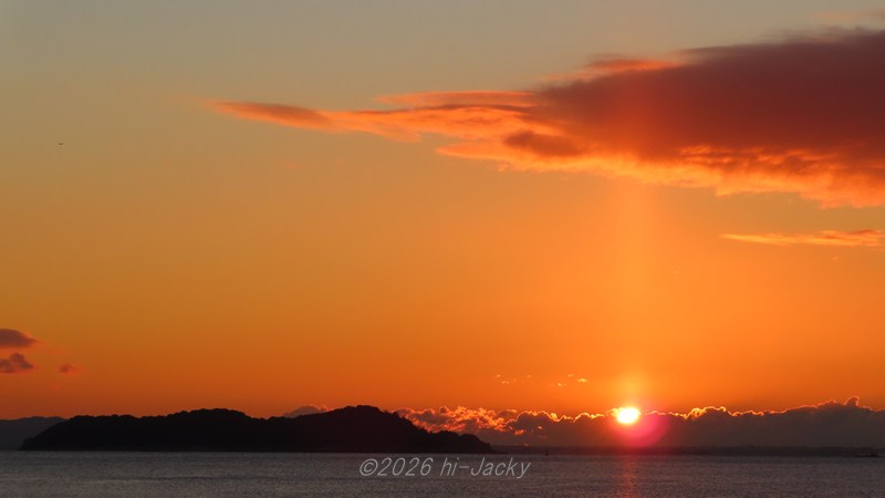 こんどは2022年2月5日に撮影した朝日です。これで,2022年2月に撮影したものは3枚目となります。私は会社に勤めているので毎日朝日を見に行くのは難しいのですが,このときはだいぶ運がよかったみたいです。