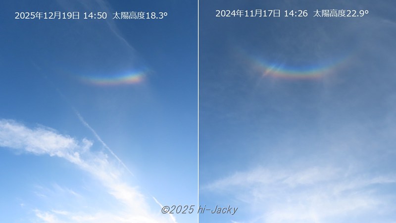 ・2025年12月25日 2025年12月19日と2024年11月17日に撮影した環天頂アークの写真を追加