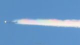 砂糖水に入る光にはいろいろな色(振動数)が混ざっています。光の振動数によって振動の向きが回転する量が異なるので,透過した光を偏光板を通してみると色がついて見えます。そして,透過光が通る偏光板の角度を光の進む方向を軸にして回転させると,下の写真のように見える色が変化します。