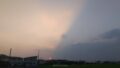 5秒後,飛行機雲彩雲がきれいに色付きました。飛行機が時速800km/hで飛行していたと仮定すると,1枚目の写真から1.1kmくらい進んだところです。