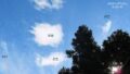 天割れとは、夕暮れ時に西の空に見られる気象現象で、入道雲(積乱雲や雄大積雲)の影が放射状に長く伸び、空が割れたように見える現象のことです