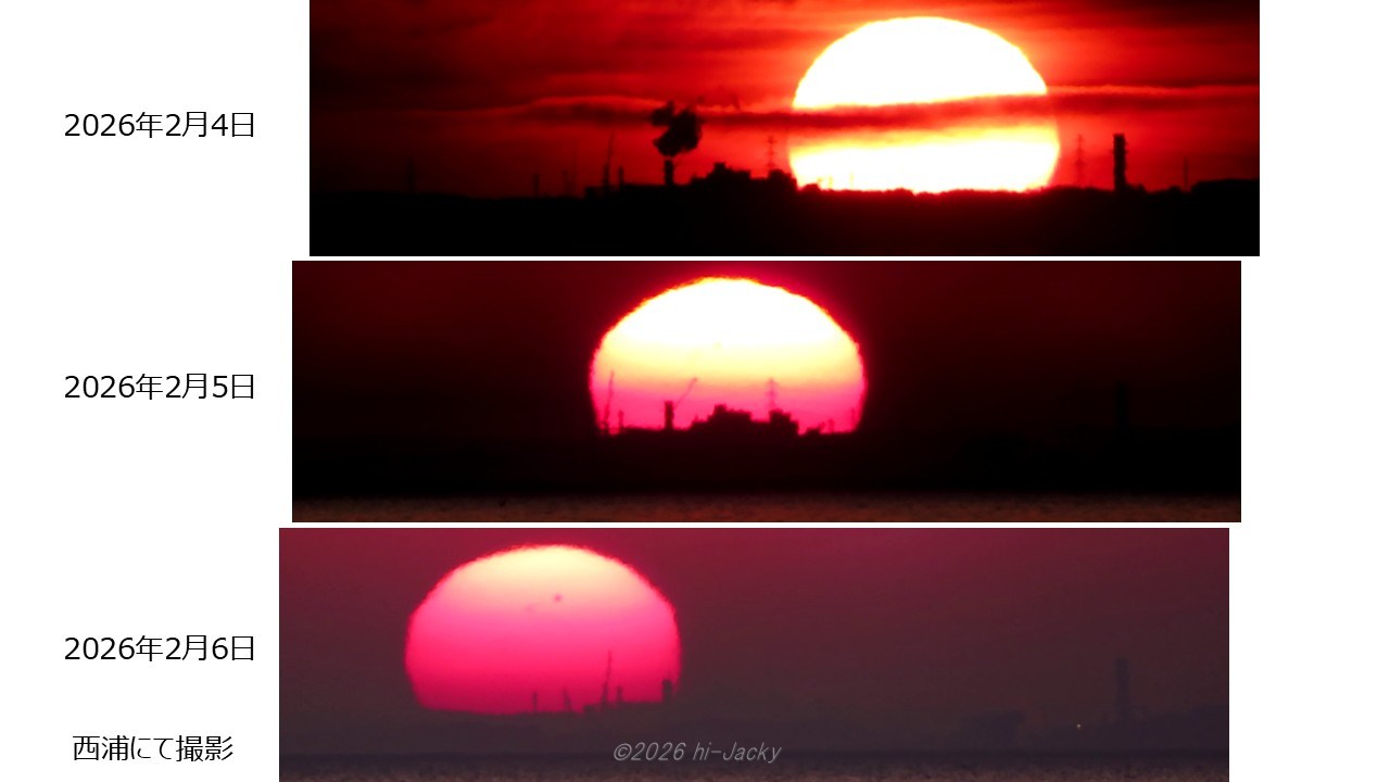 2026年2月4~6日(3日間)の日の出を観測しました。観測場所は蒲郡の西浦です。この記事の一番最初に掲載した写真は3日間それぞれの日の出です。写真の横方向位置は写っている建物に着目してそろえてあります。この写真から日の出方位は毎日変化していることがわかります。ざっくりとならこれでわかるのですが,もう少ししっかりと毎日の方位変化を調べたいです。どのようにしたらよいでしょうか?